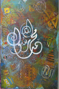 Arabic calligraphy reading "Muhammad Rasul of Allah".