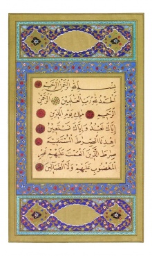 first sura in a Qur'anic manuscript by Hattat Aziz Efendi.