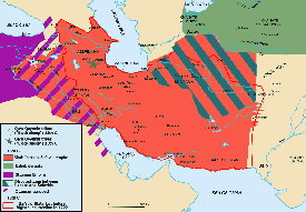 The Seljuk Turks fell apart rapidly in the second half of the 13th century, especially after the Mongol invasions in Anatolia.[127] This resulted in the establishment of multiple Turkish principalities, known as beyliks. Osman I, the founder of the Ottoman dynasty, assumed leadership of one of these principalities (Söğüt) in 1281, succeeding his father Ertuğrul. Declaring an independent Ottoman emirate in 1299, Osman I led it to a series of consecutive victories over the Byzantine Empire. By 1331, the Ottomans had captured Nicea, the former Byzantine capital, under the leadership of Osman's son and successor, Orhan I.[128] Victory at the Battle of Kosovo against the Serbs in 1389 then facilitated their expansion into Europe. The Ottomans were firmly established in the Balkans and Anatolia by the time Bayezid I ascended to power in the same year, now at the helm of a swiftly growing empire.[129]