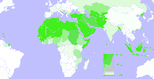 Today, Muslims may be found throughout the world, particularly in the Middle East and North, West and East Africa. Some of the most populous majority-Muslim countries are in South and Southeast Asia. Other concentrations are found in Central Asia, China, and Russia. Only about 20 percent of Muslims originate from Arab countries.[9] Islam is the second largest religion after Christianity in many European countries, such as France, which has the largest Muslim population in Western Europe, and the United Kingdom.[10][11]