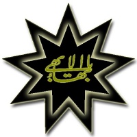 A stylized nine pointed star, with the calligraphy of the Greatest Name in the centre.
